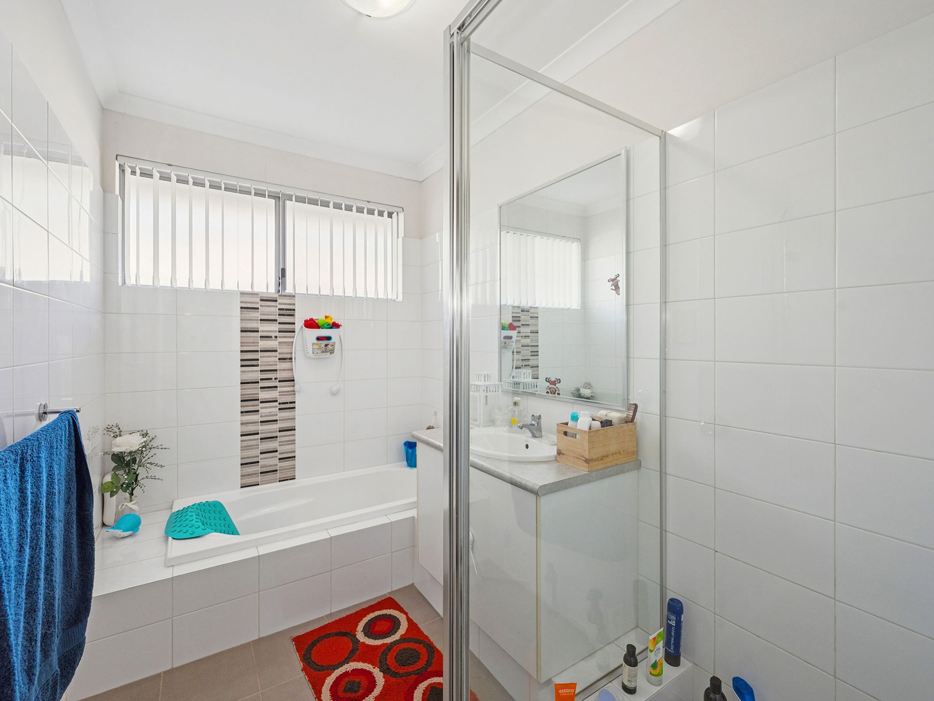 Main bathroom with both bath and shower