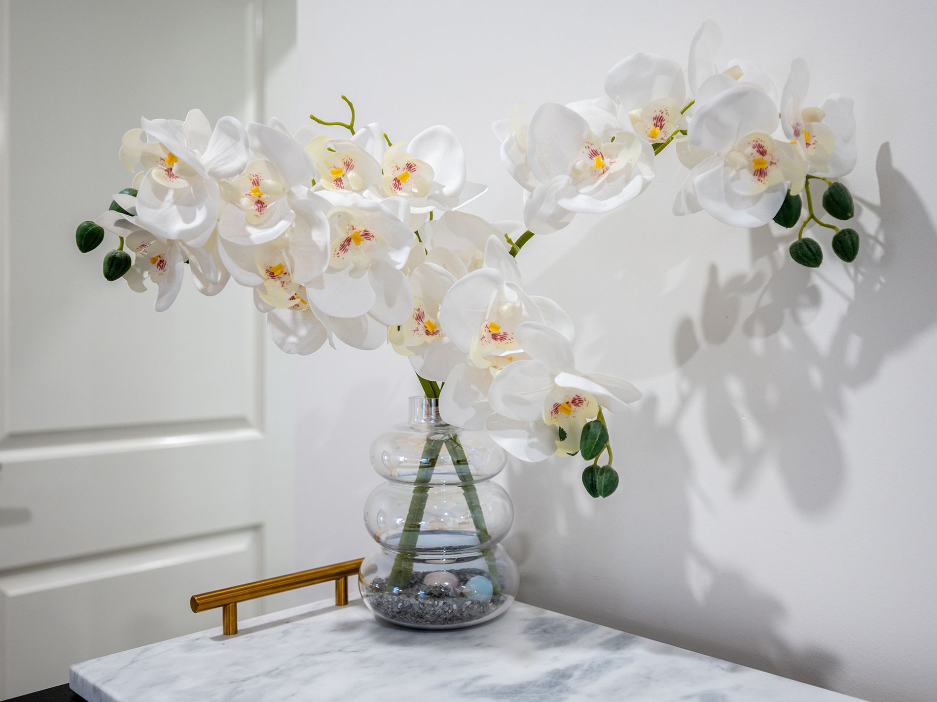 The interior focuses on volume, light, and hard-wearing luxury: