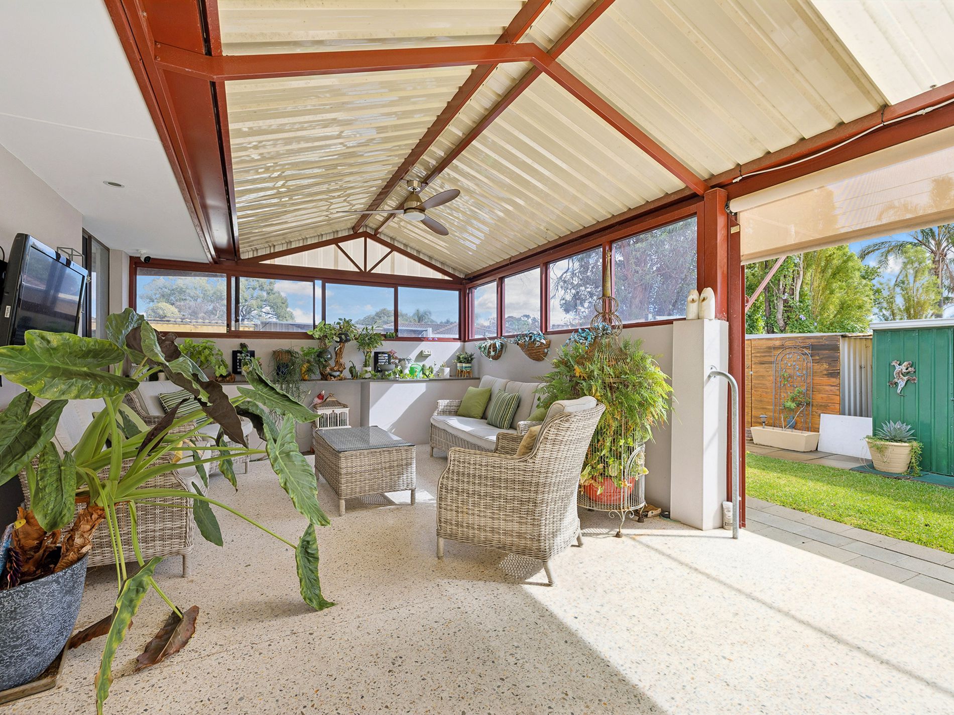 Impressive under cover patio with cafe blinds